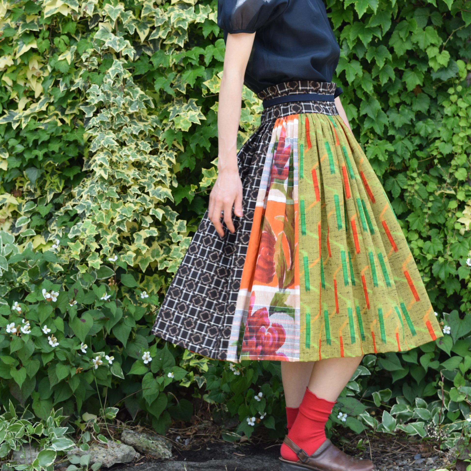 たんすに眠っている着物を暮らしを彩る洋服へとリメイクしています。日本の色彩や柄の美しさ、一期一会を楽しみながら作っています。