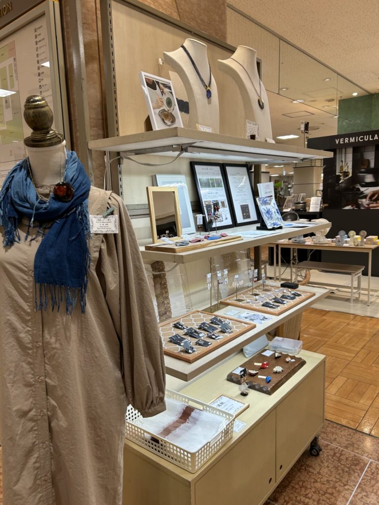 「今日をハレの日に」をテーマに、仙台市で伝統的な漆工芸の素材と技法を用いたアクセサリーを制作。「埋もれ木」「鯨歯」用いた作品も。