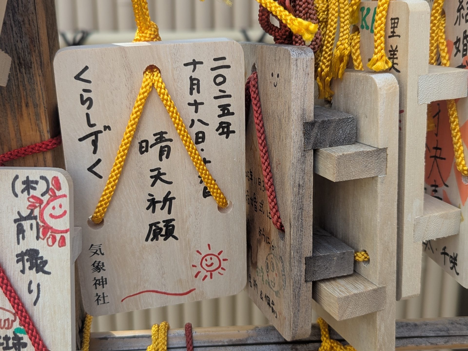 気象神社に晴天祈願に行ってきました 2025 9/25 すっかり毎年の行事となりつつある「晴天祈願」 今年も行ってきました。 場所は高円寺駅すぐにある「気象神社」。この日も多くの人が参拝に訪れていました。 私たちは毎年、祈祷をお願いしています。 今年もどうか、晴れますようにと祈りを込めてきました。 気象神社ならではの、下駄絵馬もすっかりおなじみです。 開催まであと少し! 2日間、どうか天気に恵まれますように。 NEWS URLをコピーしました! こちらもチェック くらしずく2025 「振り返りの会」を開催しました 2025年12月2日 しずくアワード2025 グランプリ&sghr特別賞決定! 2025年10月21日 「くらしずく2025」終了しました 2025年10月19日 「くらしずく2025」1日目終了しました 2025年10月18日 くらしずくの歩き方: 「くらしずく2025」思い出をみんなでシェアしよう! 2025年10月16日 くらしずくの歩き方: 暮市・雫食 出店スケジュール編 2025年10月16日 くらしずくの歩き方: 当日の入場について編 2025年10月15日 くらしずくの歩き方: 駐車場のご案内編 2025年10月11日